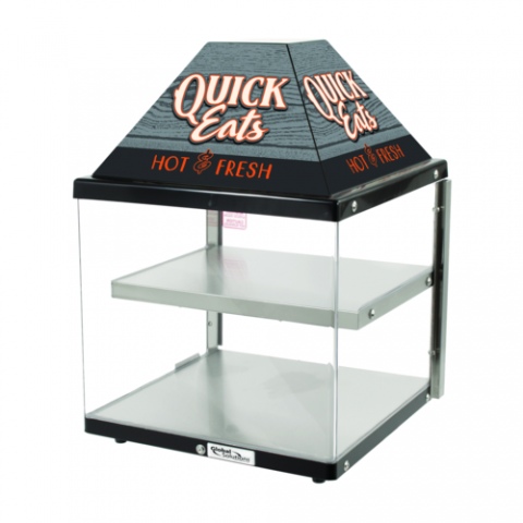 Heated Food Merchandiser, countertop, (2) heated, illuminated shelves, adjustable thermostat 80° - 150° temperature range, single door unit, accommodates up to a 16" pizza, 260 watts, 2.1 amps, 120v/60/1-ph, cULus, NSF, Made in USA