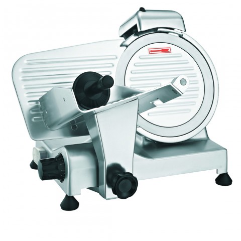 Meat Slicer, manual, gravity feed, 9" dia. stainless steel blade, adjustable slice thickness from 0" to 3/8", built-in blade sharpener, removable carriage, air-cooled motor, 3/8 HP, 280 watts, 2.5 amps, 110v/60/1-ph, NEMA 5-15P, ETL, ETL Sanitation