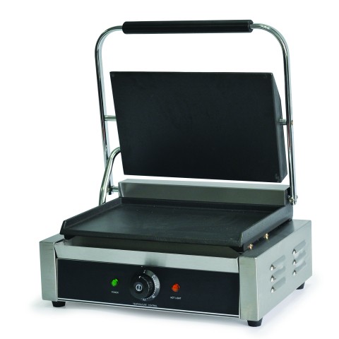Panini/Sandwich Grill, 13" x 8-1/2" cooking surface, flat seasoned cast iron heater plates, non-slip feet, stainless steel, 120v, 1750 watt, 14.6 amp, ETL