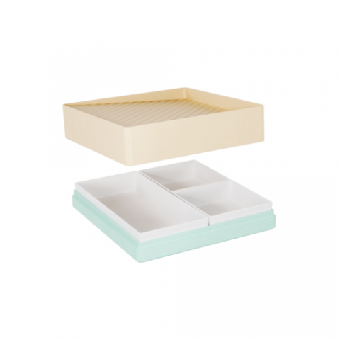 Bento Set, with white inserts, 10" x 10" x 3-3/4", Kiru, beach, Dalebrook, square, melamine (minimum = case quantity, 1 per case) (STOCK item)