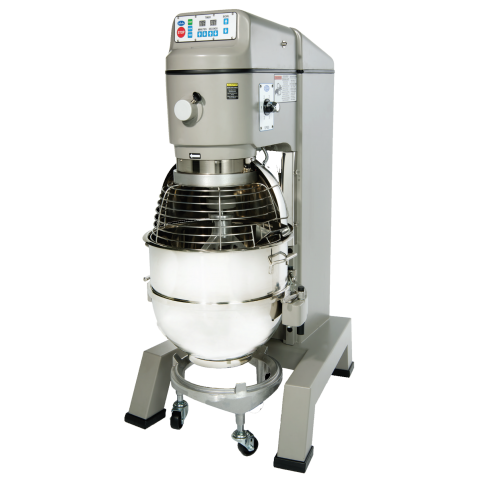 (QUICK SHIP) Planetary Mixer, floor model, 4-speed (fixed), 80 qt. (75.7 liter) stainless steel bowl, #12 hub, includes: stainless steel removable bowl guard with built-in ingredient chute, stainless steel wire whip, aluminum flat beater, aluminum spiral dough hook & bowl truck, 1/8 HP power bowl lift, gear-driven, high torque oil bath transmission, heat-treated hardened steel alloy gears & shafts, thermal overload protection, front-mounted digital touchpad controls with 60-minute digital timer & last batch recall, auto-off, non-slip rubber feet, cast iron body, 3 HP motor, 208v/60/3-ph, 12.0 amps, cord, NEMA L15-20P, NSF, cETLus (Ships within 1-2 days)