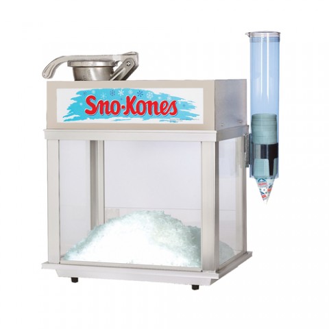 Deluxe Sno-Konette Ice Shaver Snow Cone Machine, (2) blade shaver head, safety push button switch, includes: drain pan & cone dispenser, tempered glass windows, lLED ighted stainless steel dome, heavy duty aluminum welded cabinet, 1/3 HP, 972 watts, 120v/60/1-ph, NEMA 5-15P, cULus, UL EPH Classified