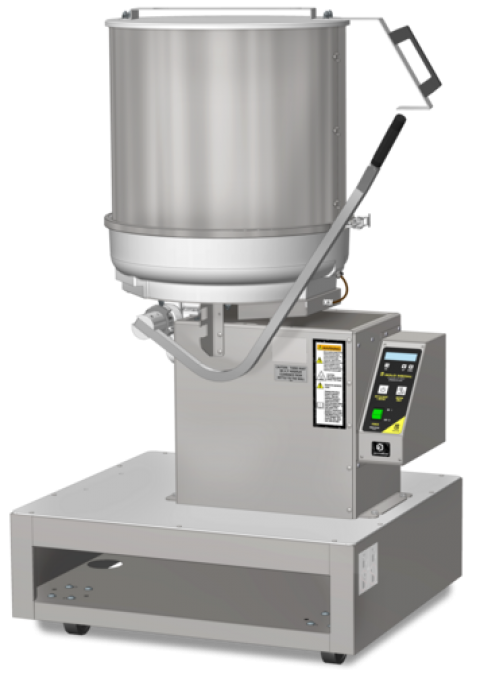 Mark 10 Corn Treat Cooker/Mixer, with special upright handle, 10 gallon capacity (3–4 batches/hour), right-hand dump, membrane keypad control with 2-line digital display, cast aluminum kettle with stainless steel drum, cULus, NSF