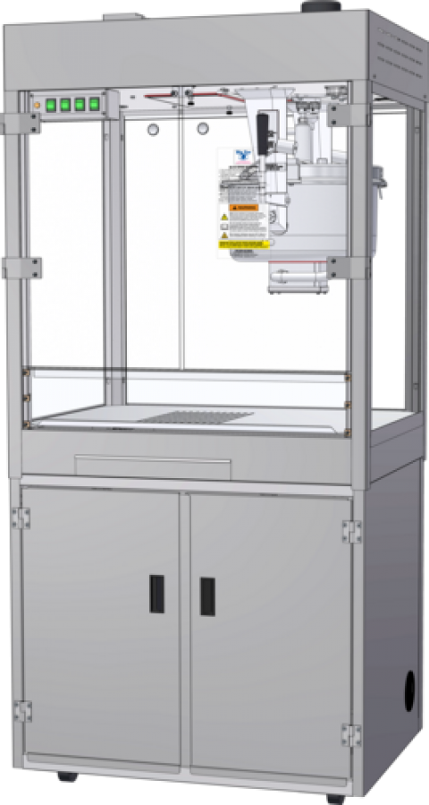 Spartan 52 oz. Popcorn Popper with Base, electric, front counter, base cabinet with swivel casters, 52 oz. top hat kettle, electronic temperature control, LED backlit sign, LED cabinet lighting, heated corn deck, 3-stage filtration system, stainless steel cabinet and base construction, no oil capability, cETLus, ETL-Sanitation