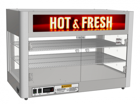 Designer Holding Cabinet (Wide), countertop, digital temperature control, swing-out doors (on one side of cabinet), LED lighted cabinet and sign, stainless steel construction, 830 watts, 120v/60/1-ph, NEMA 5-15P, cULus, UL EPH Classified