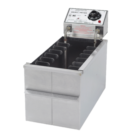 Fryer, small, electric, 30 lb. oil capacity, (2) standard six position clip assembly, drain valve, emergency stop safety button, 3000 watts, 208/240v/60, NEMA 6-15P, UL, NSF