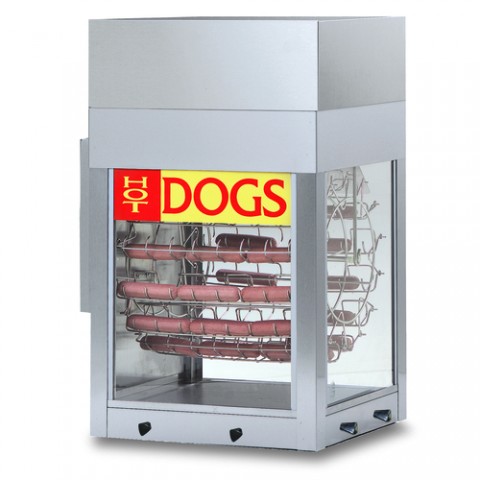 Dogeroo® Hot Dog Rotisserie, (56) regular-size hot dogs/(28) buns capacity, stainless steel cabinet, removable tempered glass windows, integrated bun warmer with water pan, adjustable heat control, 1440 watts, 120v/60/1-ph, NEMA 5-15P, cULus, NSF
