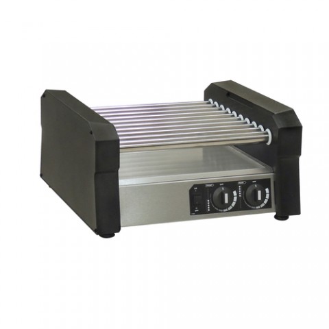 Hot Diggity® Pro C Hot Dog Roller Grill, small, countertop, (10) stainless steel rollers, separate temperature controls for front & rear heat zones, cabinet switches from flat to slanted, roller grill angle adjustable to 4° or 8°, stainless steel drip tray, 618 watts, 120v/60/1-ph, NEMA 5-15P, cULus, NSF