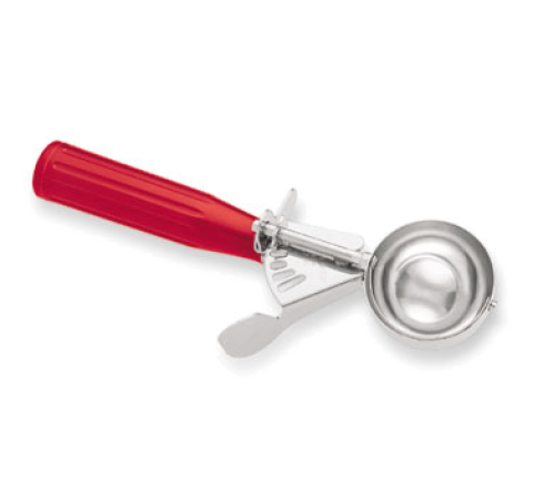 Disher, size 24, with 1-piece color coded handle, stainless steel bowl, NSF approved, 1 year warranty, red (must be purchased in multiples of 12)
