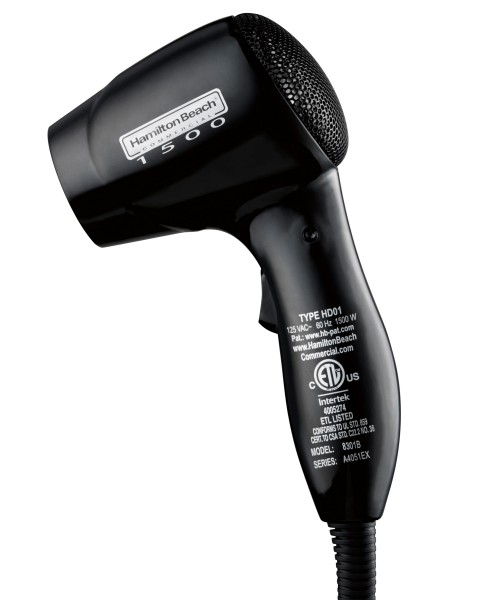 Hamilton Beach® Commercial Hair Dryer, theft-deterrent wall mount, contoured handle, 2-speed, black, 6 ft. cord with ALCI plug and built-in night light, 125v, 60 Hz, 1500 watts