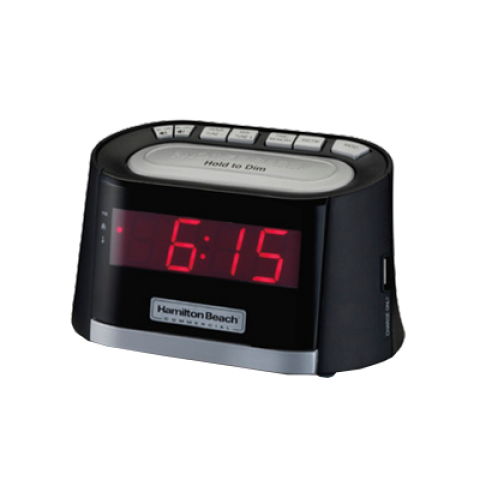 Clock Radio, .9" LED display, snooze button, am/fm, pm indicator, alarm, battery backup, USB charging port, 120v/60/1-ph, 10 watts, cETLus, 1 year warranty