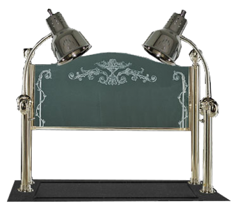 Carving Display, (2) single heat lamps, bulb type, mounted on heavy duty 20" x 36" synthetic granite carving base, etched glass sneezeguard, stainless steel construction, (specify finish), 115v/60/1-ph, 4.35 amps, NEMA 5-15P