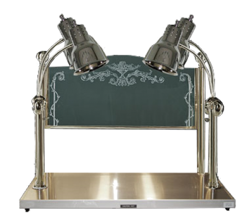Carving Display, (2) dual heat lamps, bulb type, mounted on 20" x 36" stainless steel heated base, with etched glass sneeze guard, stainless steel construction, 115/60/1-ph, NEMA 5-15P