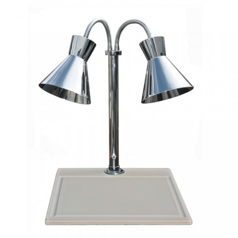 Heat Lamp, Streamline style, (1) dual bulb, (2) 250 watt Teflon coated infrared heated bulbs, mounted on 18" x 20" white solid surface carving base with gravy lane, 200-series shades, stainless steel, (specify finish), 115v/60/1-ph, 500 watts, 4.35 amps, NEMA 5-15P (ships in 2 cartons)