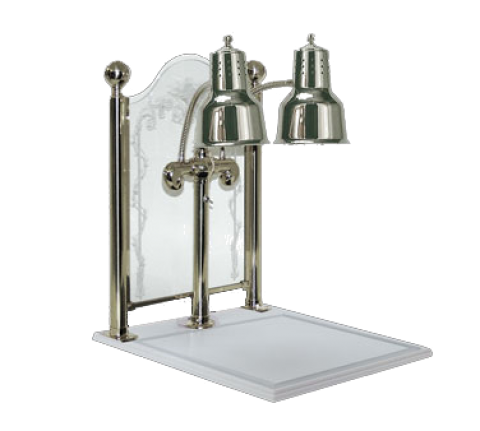 Chef's Carver Carving Station, (1) dual bulb heat lamp, mounted on 20" x 24" white solid surface carving base, with etched glass sneeze guard, stainless steel construction, (specify finish), 115v/60/1-ph, 4.35 amps, NEMA 5-15P (ships in 2 cartons)