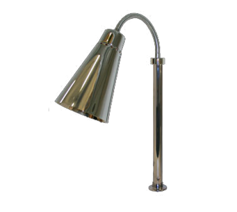 Heat Lamp, Streamline style, single, bulb type, for counter or cutting board mounting, 900 series shades, stainless steel construction, chrome finish