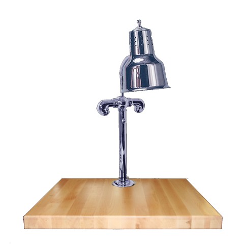Heat Lamp, single, bulb type, mounted on 24" x 24" maple block base, without gravy lane, stainless steel construction, (specify finish), 115v/60/1-ph