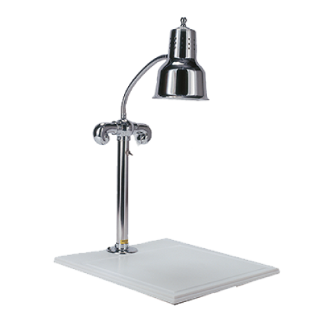 Heat Lamp, single, bulb type, mounted on 20" x 20" white solid surface carving base, (1) 250 watt bulb, stainless steel construction, (specify finish), 115v/60/1-ph