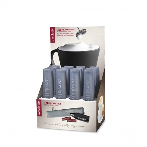 Aerolatte® Milk Frother, steam free, travel size, includes batteries & case, stainless steel construction, black finish (12 each total per display/case)