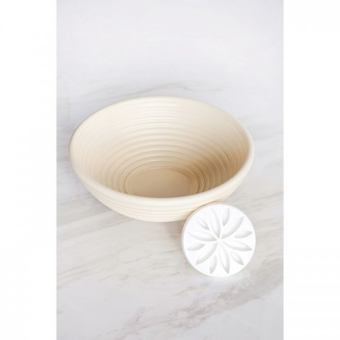 Talisman Bread Proofing/Serving Basket, 9" x 8" x 3", round, with embosser, retains heat to provide structure and shape during bread rising process, dishwasher safe, BPA-free, polypropylene, beige