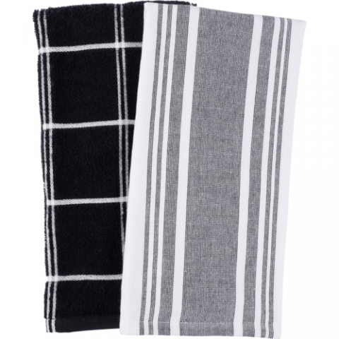 Cat Cora Terry Kitchen Towels, 6"W x 14"D x 1"H, black, heavyweight terry cloth cotton, lint-free, machine washable