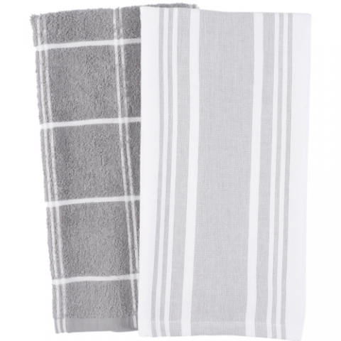 Cat Cora Terry Kitchen Towels, 6"W x 14"D x 1"H, gray, heavyweight terry cloth cotton, lint-free, machine washable