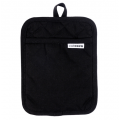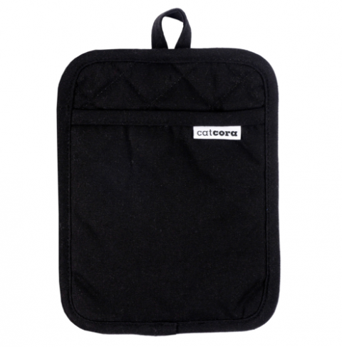 Cat Cora Potholder, 7"W x 9"D x 0.25"H, black, heavyweight cotton and polyester, quilted lining, non-slip silicone overlay, heat resistant up to 400°F, machine washable
