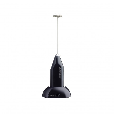 Aerolatte® Milk Frother, steam-free, counter stand & batteries included, stainless steel construction, black