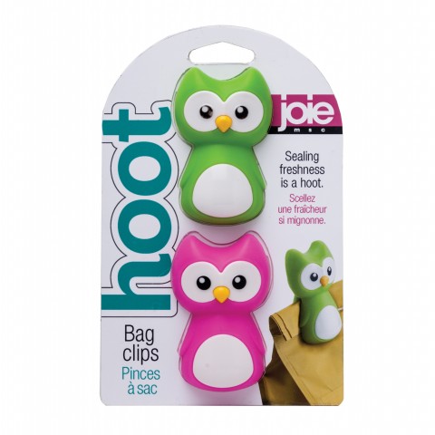 Joie Hoot Owl Bag Clip, plastic and silicone, assorted colors (carded) (2 each per set)