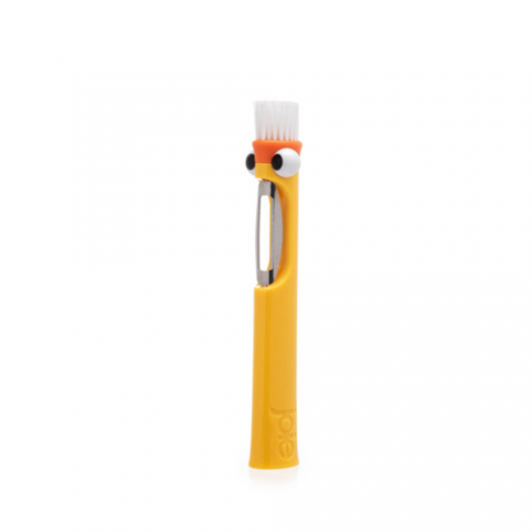 Joie Peekaboo Peeler & Brush, 1.14" x 1.38" x 7.28", with Built-in bristle potato brush, 18/8 stainless steel, plastic, and nylon; BPA-free