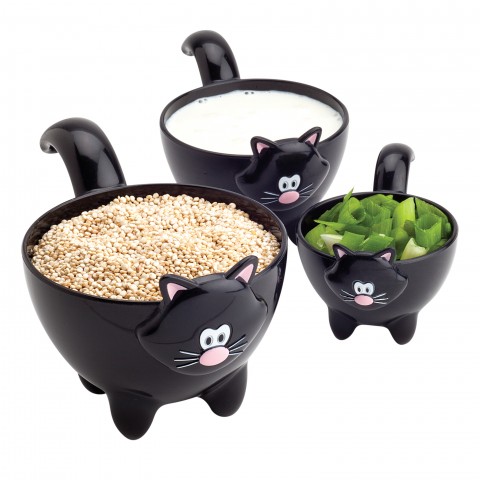 Joie Meow Measuring Cups, includes 1/4 cup, 1/2 cup, 1 cup, stackable, cat design, assorted colors (priced per set, 3 each per set, black & white included in master case, colors chosen at random upon shipment)