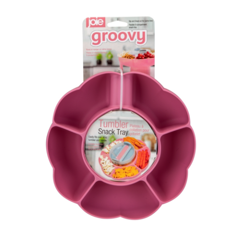 Joie Groovy Tumbler Snack Tray, Pink, 1.57" x 9.84" x 7.87", Silicone, fits over 40-ounce tumblers and their handles, (5)compartments, reusable, flexible, and dishwasher safe (6 per case)