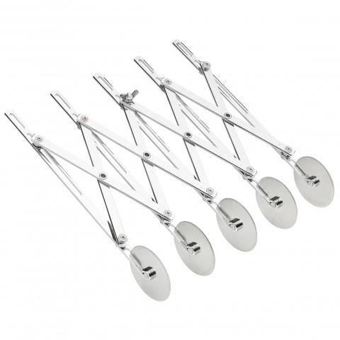 Fante's Cousin Daniele's Expandable Dough Cutter, closed 2-1/4" x 9-1/2", expands to 19-1/2", wheel dia. 2-1/4", cuts strips of dough from 3-8" to 4-7/8" wide & up to 7/8" thick, stainless steel