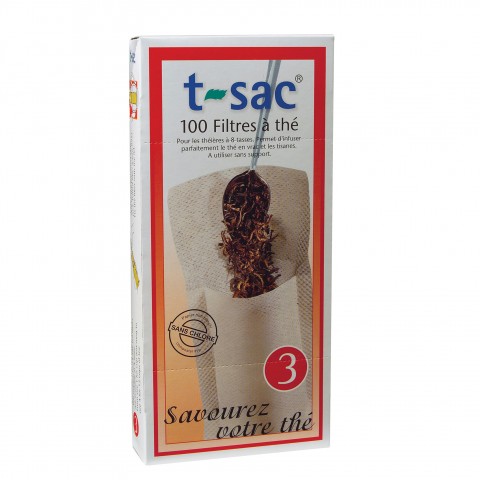 T-Sac® Filter #3, 3-8 cup, Disposable Paper Filter Loose Tea Bags, natural, biodegradable & chlorine free, box of 100