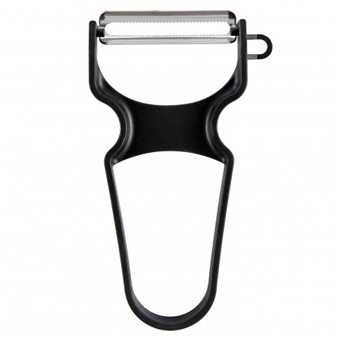 HIC Swiss Style Y-Peeler, 4-1/4" x 2-1/2", dishwasher safe, stainless steel blade, black polypropylene handle