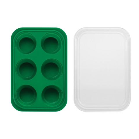 Prep-N-Freeze Portion Tray, 12 oz., 7-1/2" x 5-1/4" x 2"H, (6) 2 oz. compartments, collapsible, with lid, freezer/dishwasher safe, heat safe to 500°F, silicone, green, BPA free