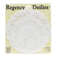 Regency Doilies Pack, round, assorted sizes include: (12) 10", (12) 8", (12) 4", white (36 each total per pack)