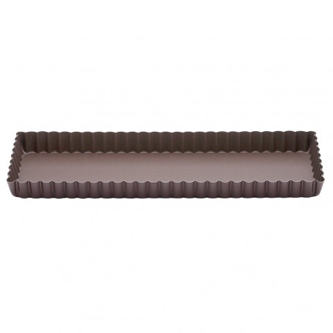 Gobel Quiche Pan, 13-3/4" x 4-1/4", rectangular, removable bottom, non-stick, tinned steel, Made in France