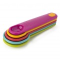 Joie Measuring Spoon Set, 5-piece, nesting, from 1/4 teaspoon to 1 tablespoon, dishwasher safe, BPA free, plastic, assorted colors (1 of each color: pink, yellow, red, blue, and green) (carded)