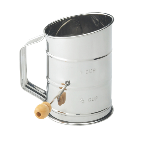 HIC Rotary Flour Sifter, 1 cup, crank handle, stainless steel