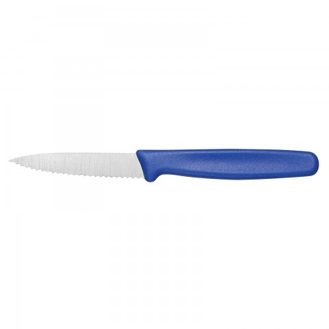 Cutlery-Pro® Paring Knife, 3", serrated, stainless steel blade, ergonomic handle, dishwasher safe, assorted red & blue handles (24 each total per display/case)