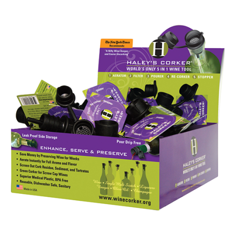 Haley's Corker, 5-in-1, aerator, filter, pourer, re-corker, stopper, plastic (36 each total per display/case) (hangtag)