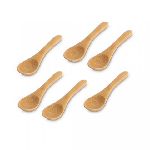 Maison du Fromage Reusable Mini Serving Spoon Set, includes (6) 3.5" x 0.75" x 0.25" spoons, burnished bamboo