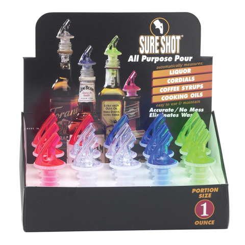 Precision Pours Sure Shot® Pourers, plastic, assorted colors (15 each total per display/case)