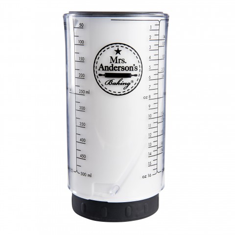Mrs. Anderson's Baking® Adjustable Measuring Cup, 2 cup (16-1/2 oz.), includes ounces, cups, milliliters & liters capacity markings, liquid tight stopper, ABS plastic & polypropylene (boxed)