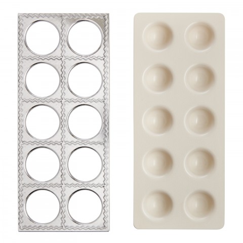 Grandma Luisa's Ravioli Form, 12-1/4" x 5", makes (10) 2-1/2" raviolis, includes instructions & recipes, BPA free, aluminum and plastic, white (boxed)