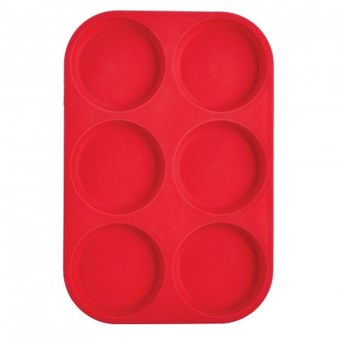 Mrs. Anderson's Baking® Muffin Top Pan, 13-1/2" x 9" x 3/4" overall, makes (6) 4" dia. muffin tops, dishwasher safe, heat resistant up to 500°F, silicone, red
