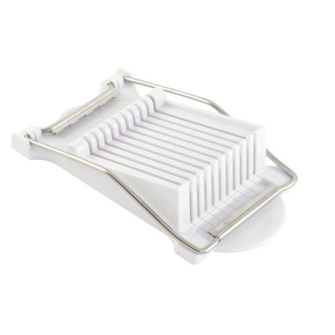 HIC Luncheon Meat Slicer, for canned meat, cuts (9) 1/2" slices, 8-3/4" x 5" x 2", stainless steel wires, dishwasher safe, ABS plastic, white, BPA free (boxed)