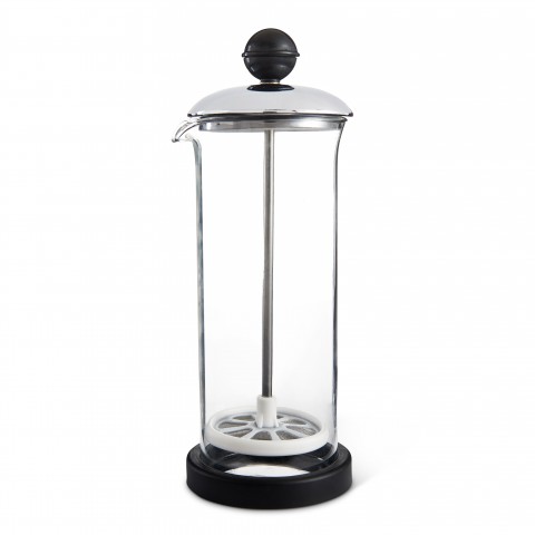 HIC Milk Frother, 16 oz., 3" dia. x 8-3/4"H, includes frother, non-skid base, double mesh aerator, & lid with attached plunger, tempered glass, rubber & chrome-plated steel (boxed)