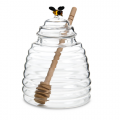 HIC Kitchen Honey Jar, glass, beehive-shaped jar (16-ounce capacity), with wooden dipper